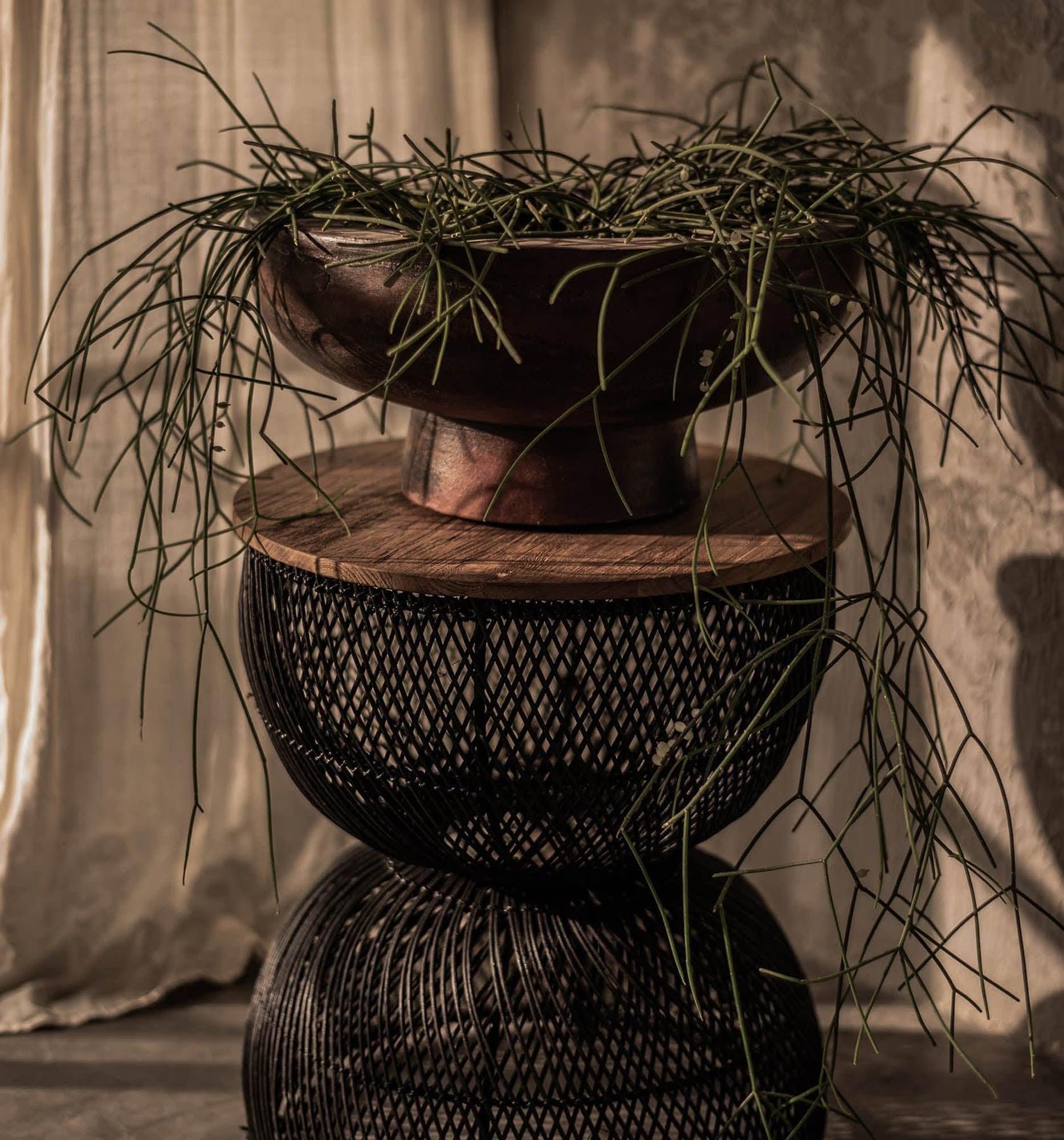 Product Info: Traditional Javanese craftsmanship given new life. Using natural materials, this piece brings a splash of island style to your home. The top is made from reclaimed teak and retains the wood’s natural tones, while the base is woven using customary rattan techniques passed down through generations and coloured a striking black. Sturdy and stylish, this piece is essential for any rustic home setting.