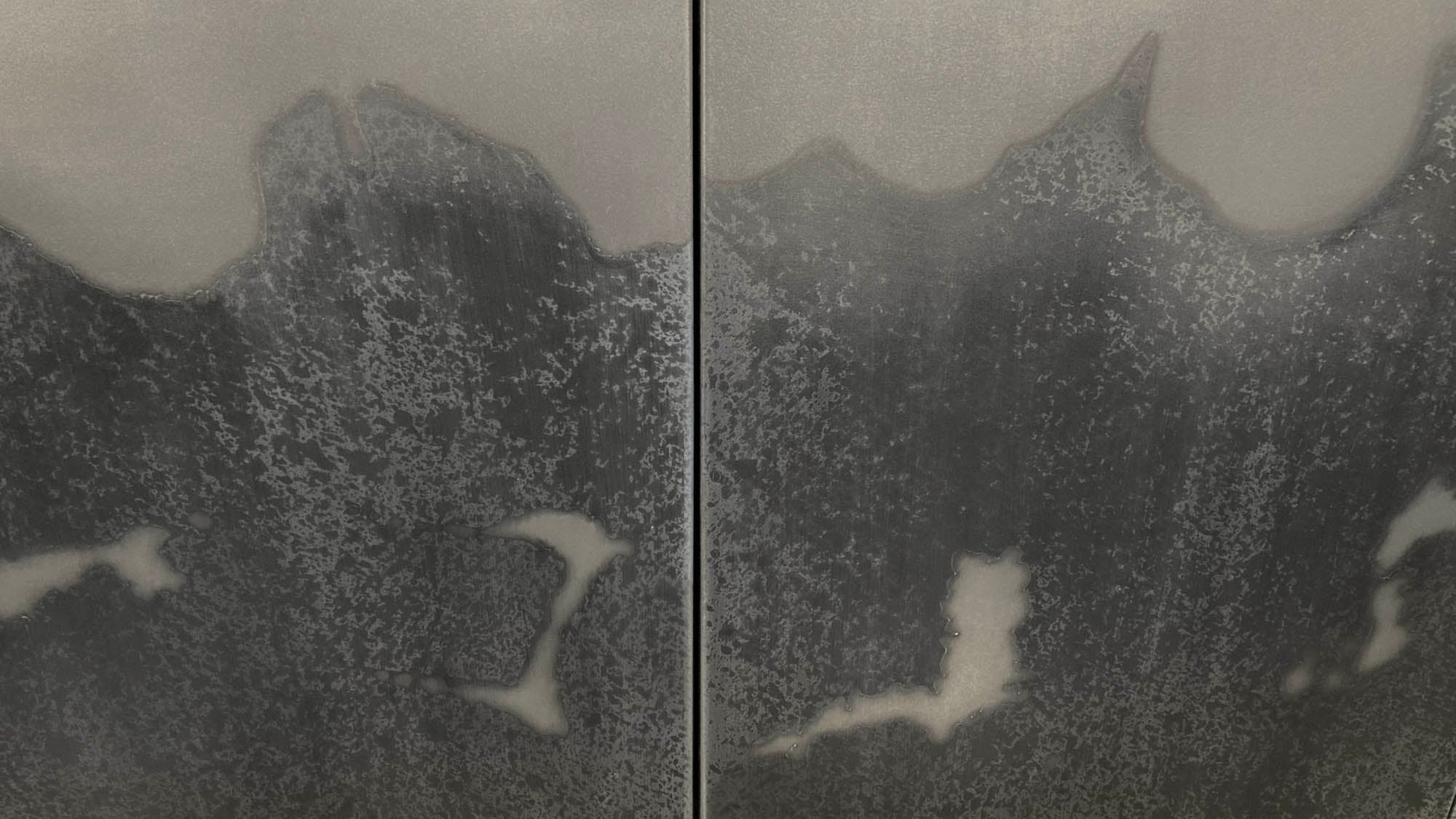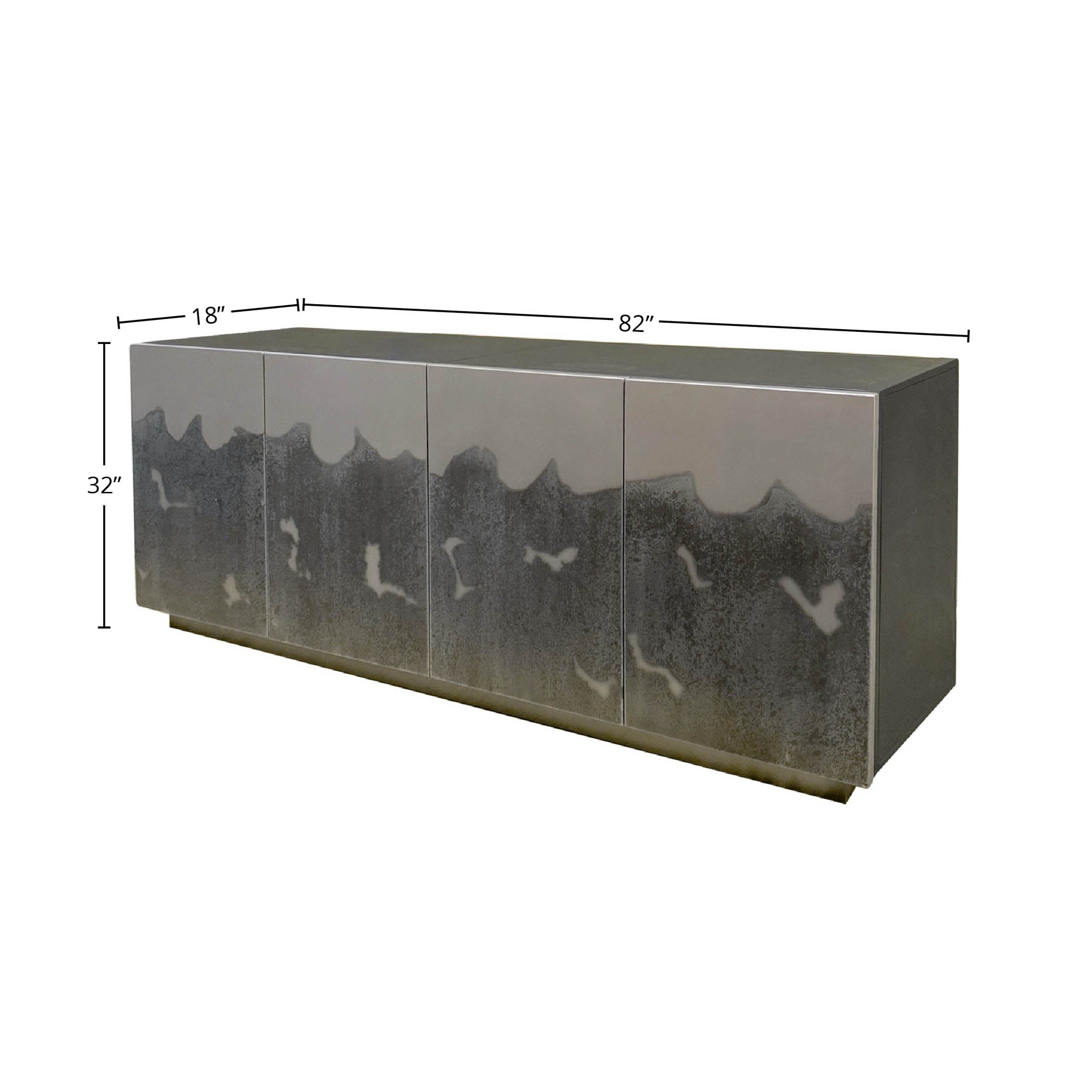 Features: Each piece is unique with its own individual etched finish. | 4 Doors with non-adjustable shelving inside.