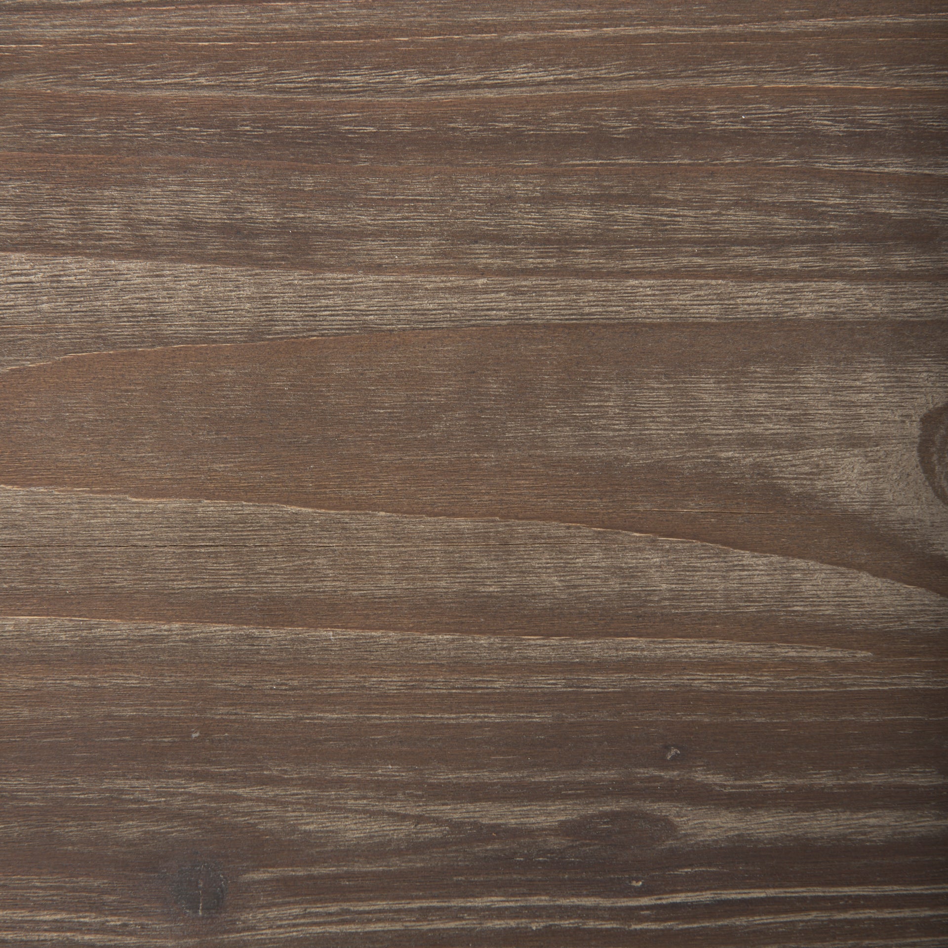 The stylish, engineered pine wood top is braced by a unique, rustic metal frame.