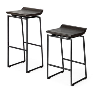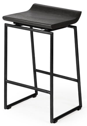 The Givens is a bar stool featuring a contoured seat made from solid Indian mango wood and finished in a matte-black polish. The seat is mounted on a sturdy, matte-black toned iron frame equipped with a footrest . The Givens fits well in spaces that are based on the Industrial design style.
