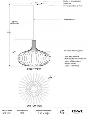 Dimensions: WDH": 19.75 x 19.75 x 16.5
