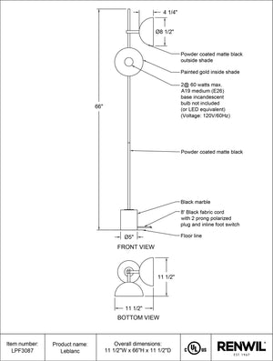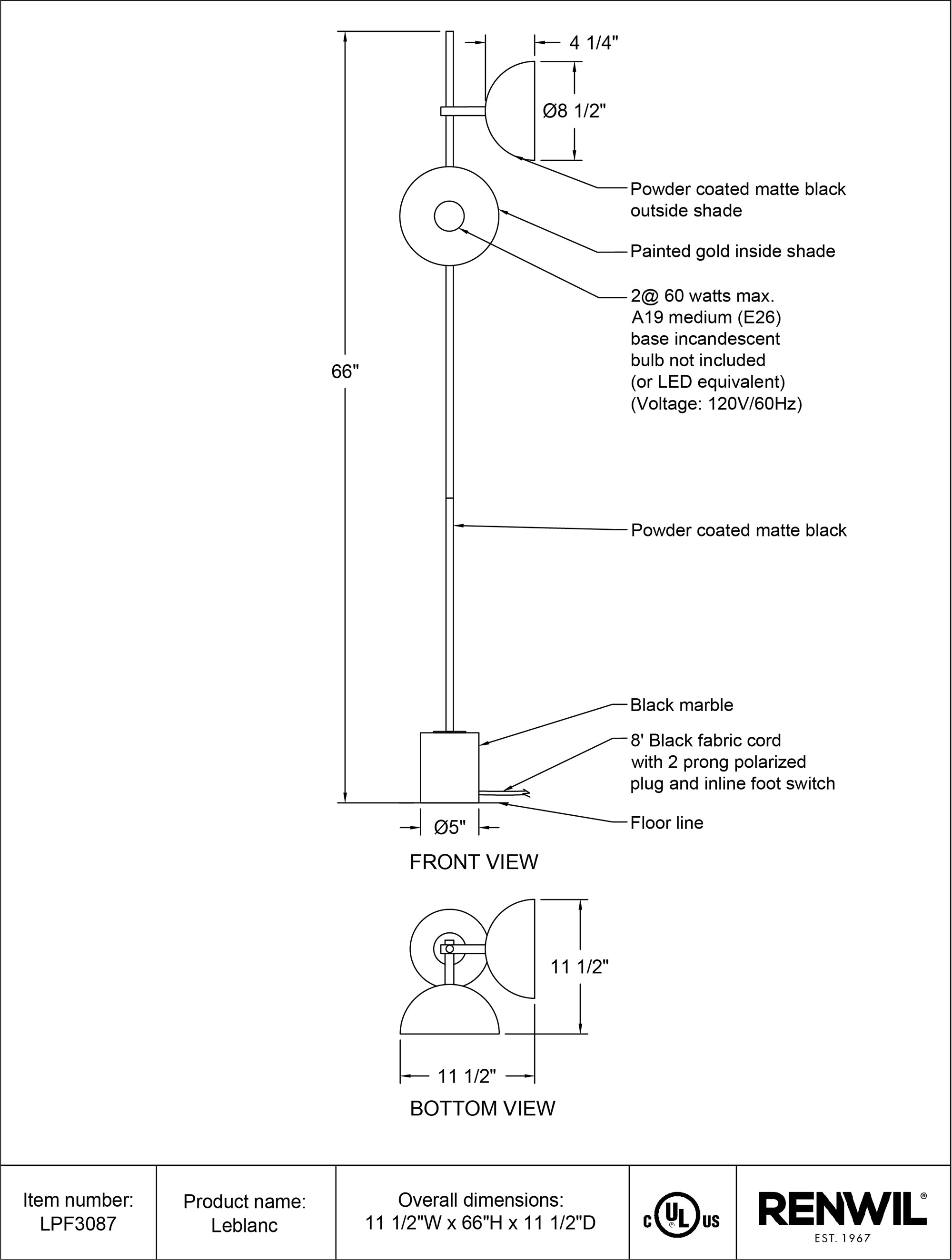 Dimensions: 66"H x 11.5"W x 11"D