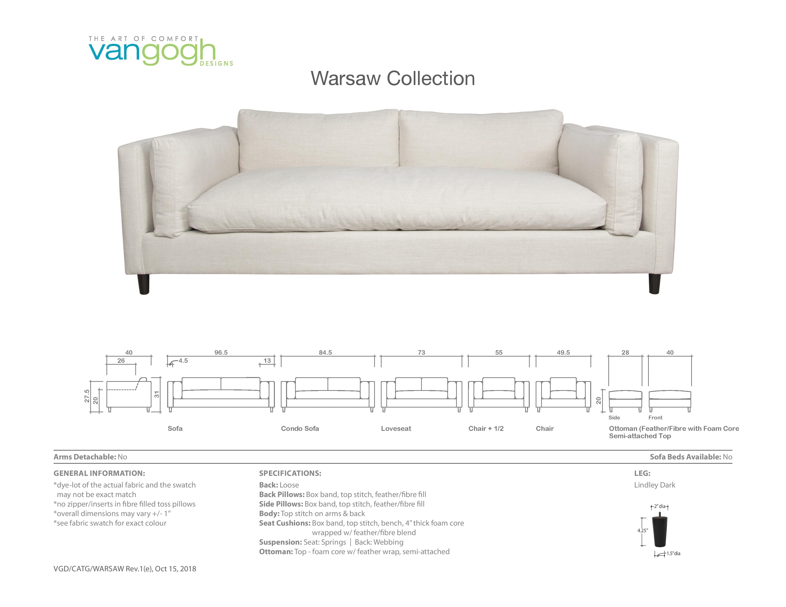 The Warsaw sofa is clean and contemporary in style, with deep, soft seating, and feather wrapped cushions.
